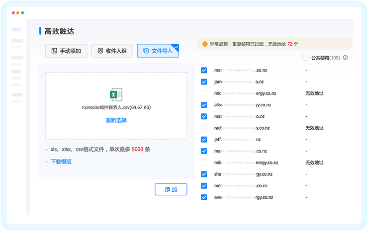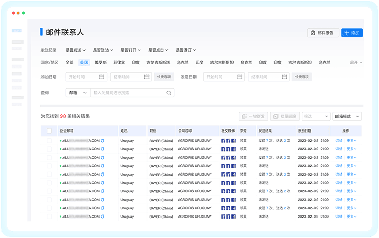 k8凯发国际外贸通内置自动发送系统,根据需求智能分析投递线路,抵达率达90%以上;联系人管理、重要度匹配、无效邮箱过滤等功能,触达、跟进更高效