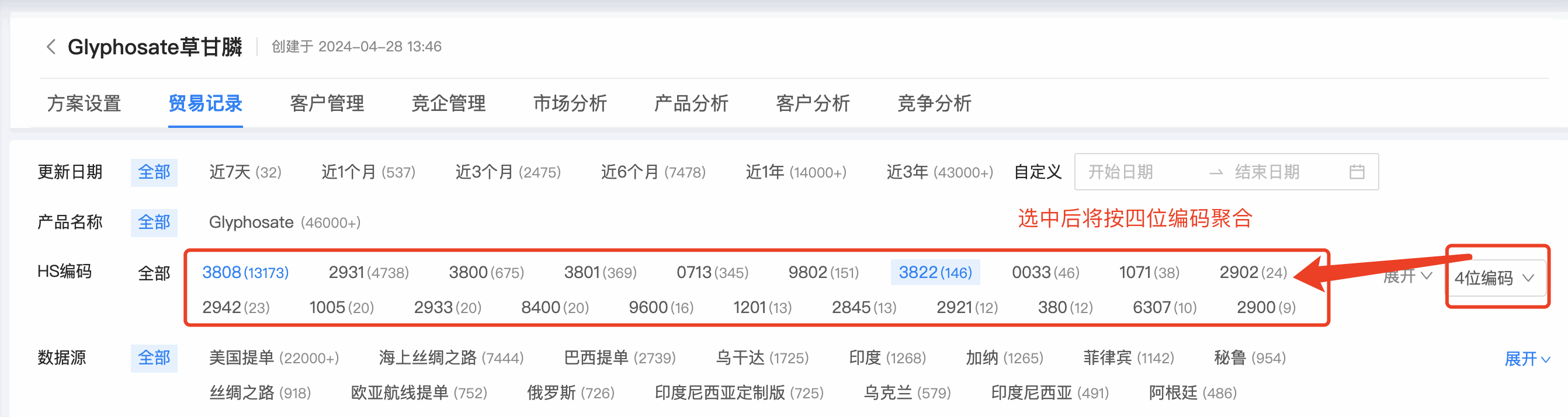1. k8凯发国际数据通贸易记录的编码筛选,支持按 4 位、 6 位编码位数统计,同时可支持多选。