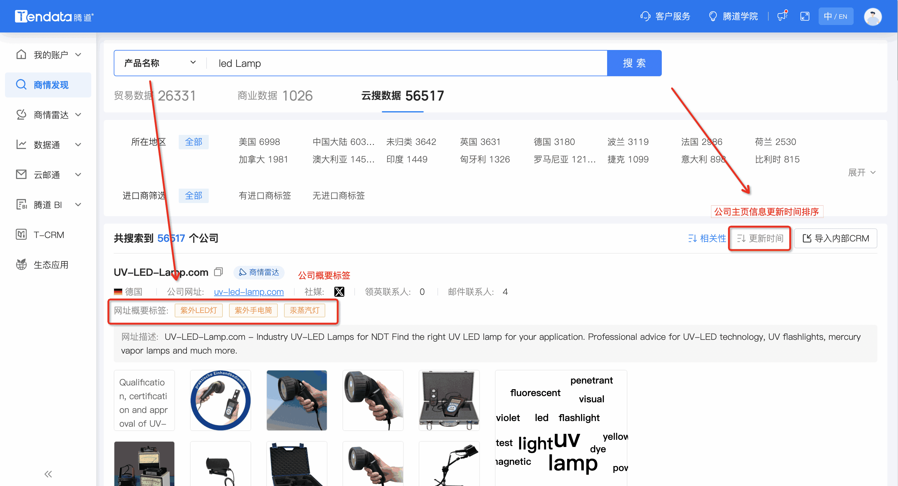 2、云搜海关数据:搜索结果新增【公司主页信息更新时间】排序条件