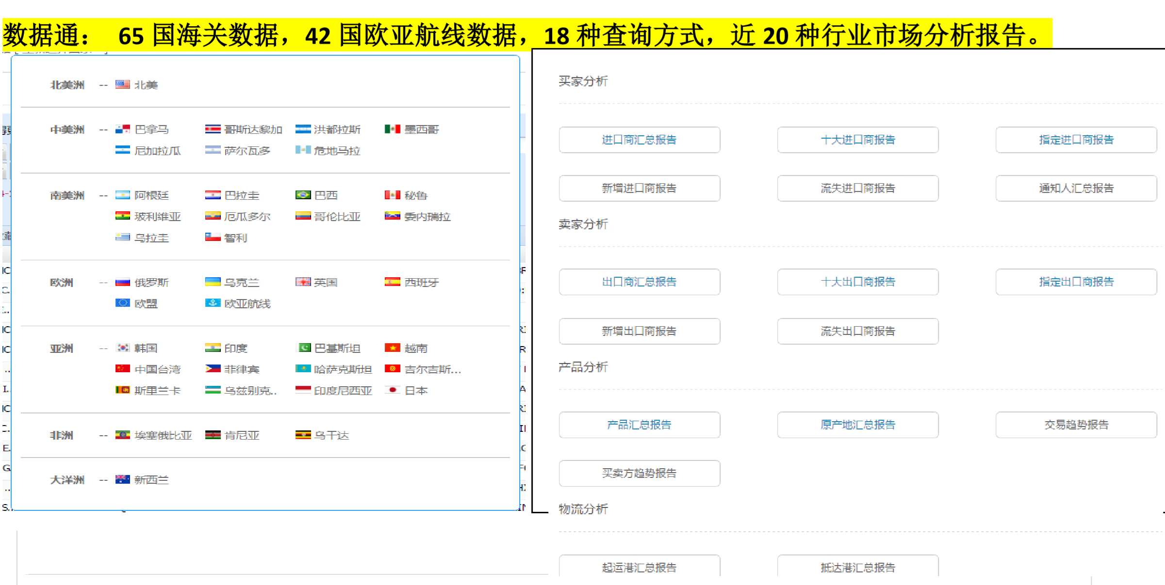 k8凯发国际海关数据库,实时给予全球涵盖65国海关数据,42国欧亚航线数据,100+亿实时贸易数据,定位1.8亿全球企业信息,帮助您分析全球市场贸易趋势及分布,为您的产品快速、精准、科学地锁定热销国家和新兴市场。